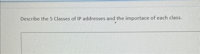 Solved Describe the 5 Classes of IP addresses and the | Chegg.com