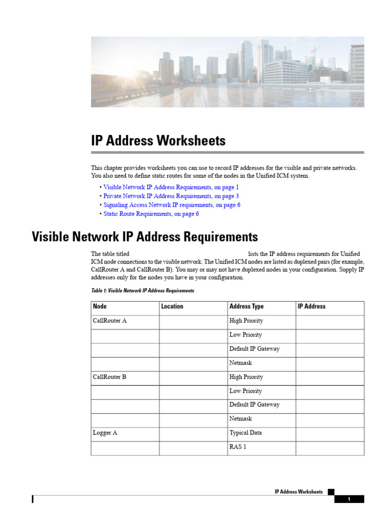 IP Address and Static Route Worksheets | PDF | Ip Address | Computer ...