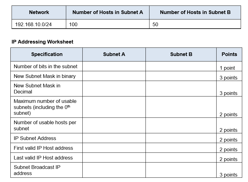 IP Addressing and Subnetting Worksheet