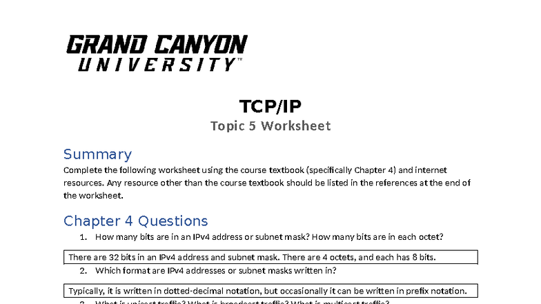 ITT 116 T5 Worksheet: IPv4 Addressing and Subnetting Summary - Studocu