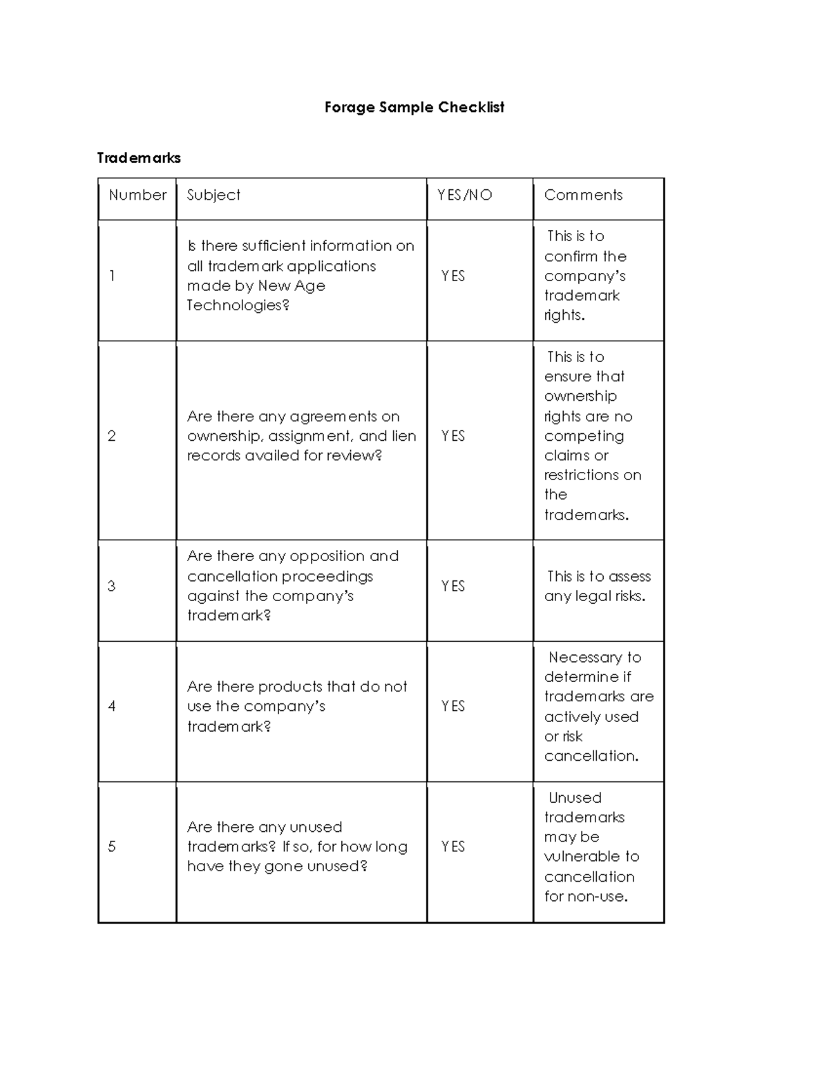 IP Checklist: Trademark Due Diligence and Ownership Review - Studocu
