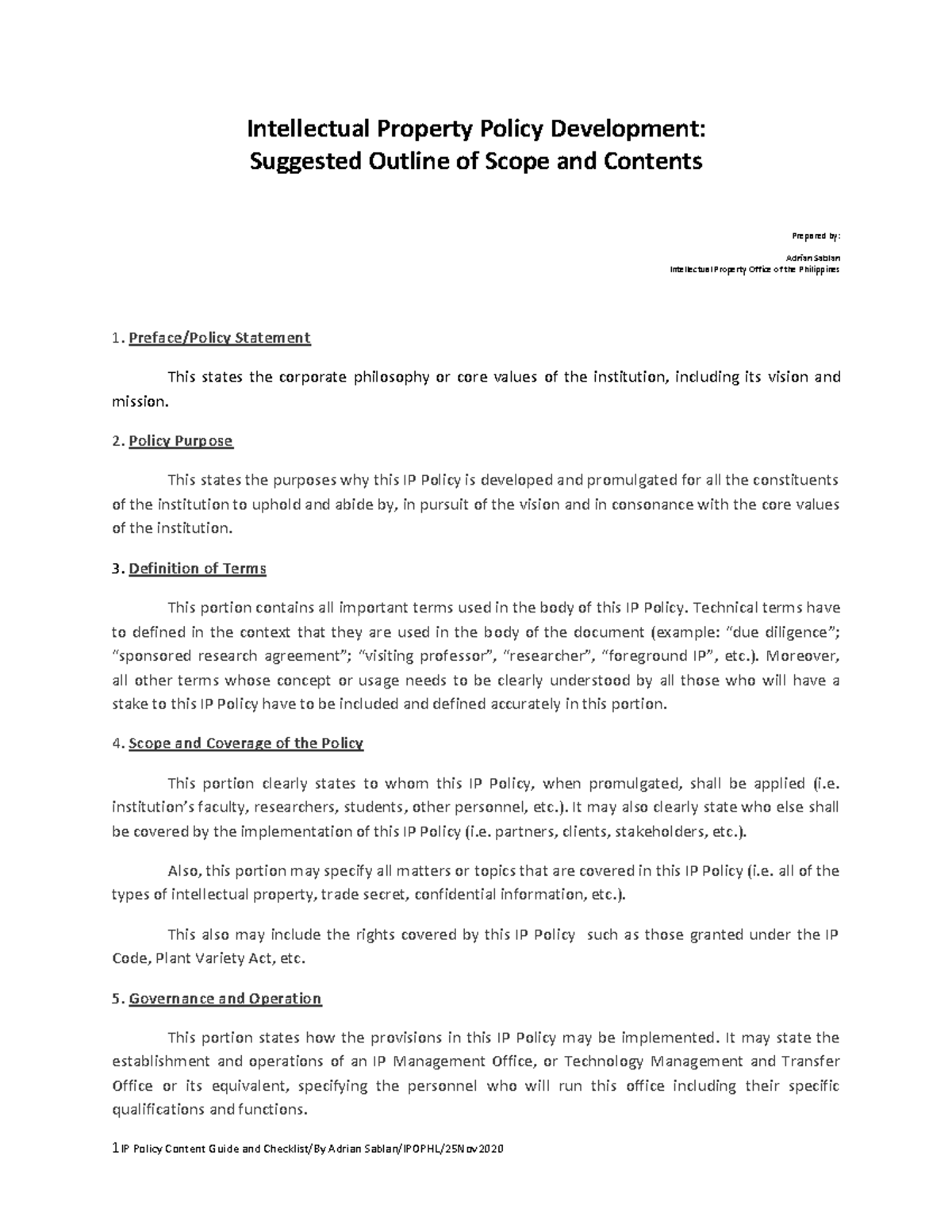 IP Policy Content Guide and Checklist | PDF | Intellectual Property ...