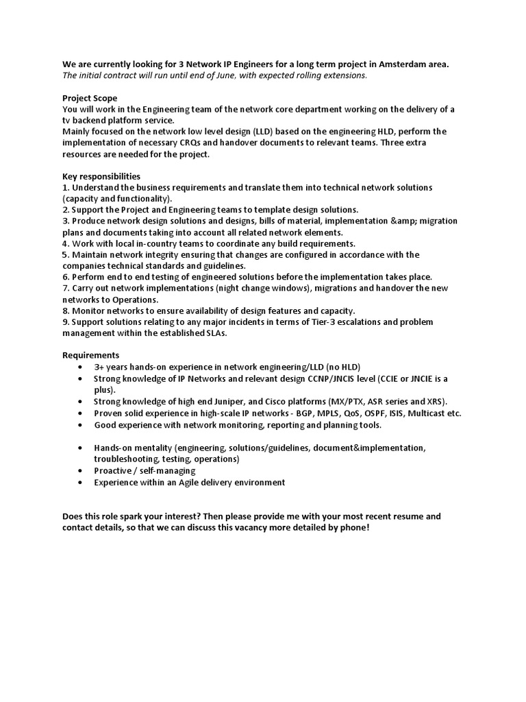 Network IP Engineer (LLD) 3x | PDF | Computers