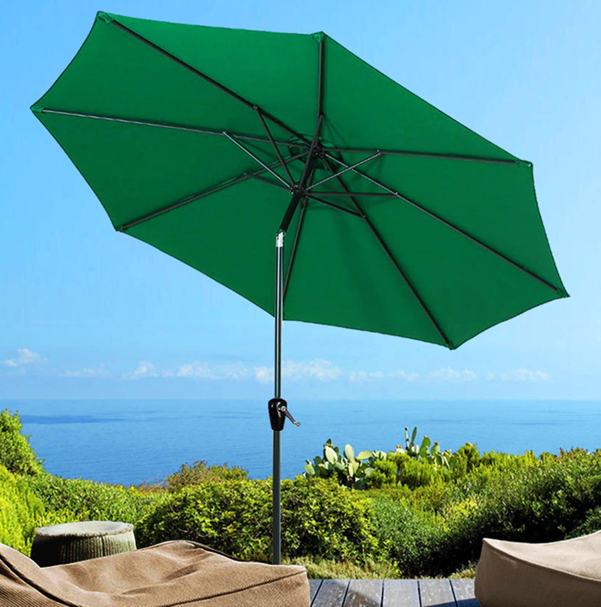 9FT Outdoor Patio Umbrella, Round Table Umbrella with Tilt and Crank ...