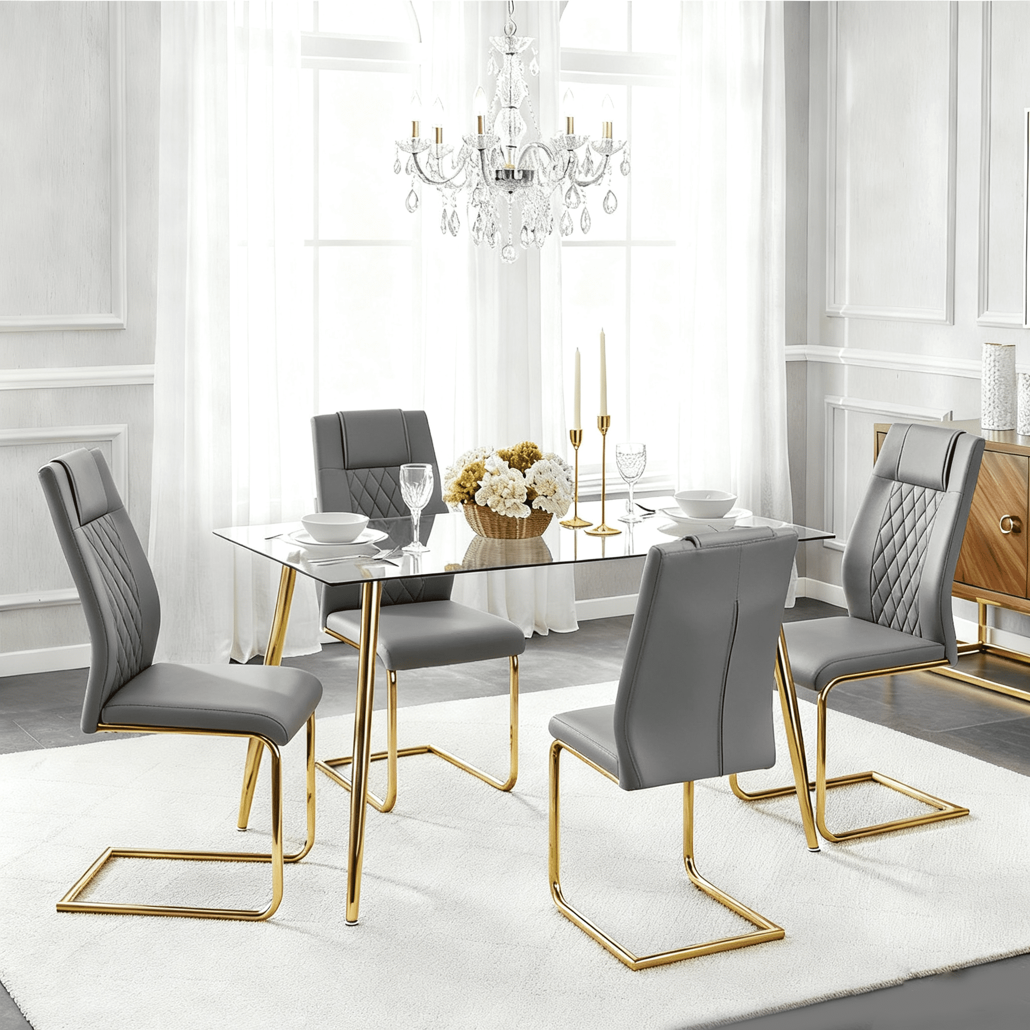 LUFTUT 5-Piece Glass Dining Table Set, 51" Tempered Glass Table with ...