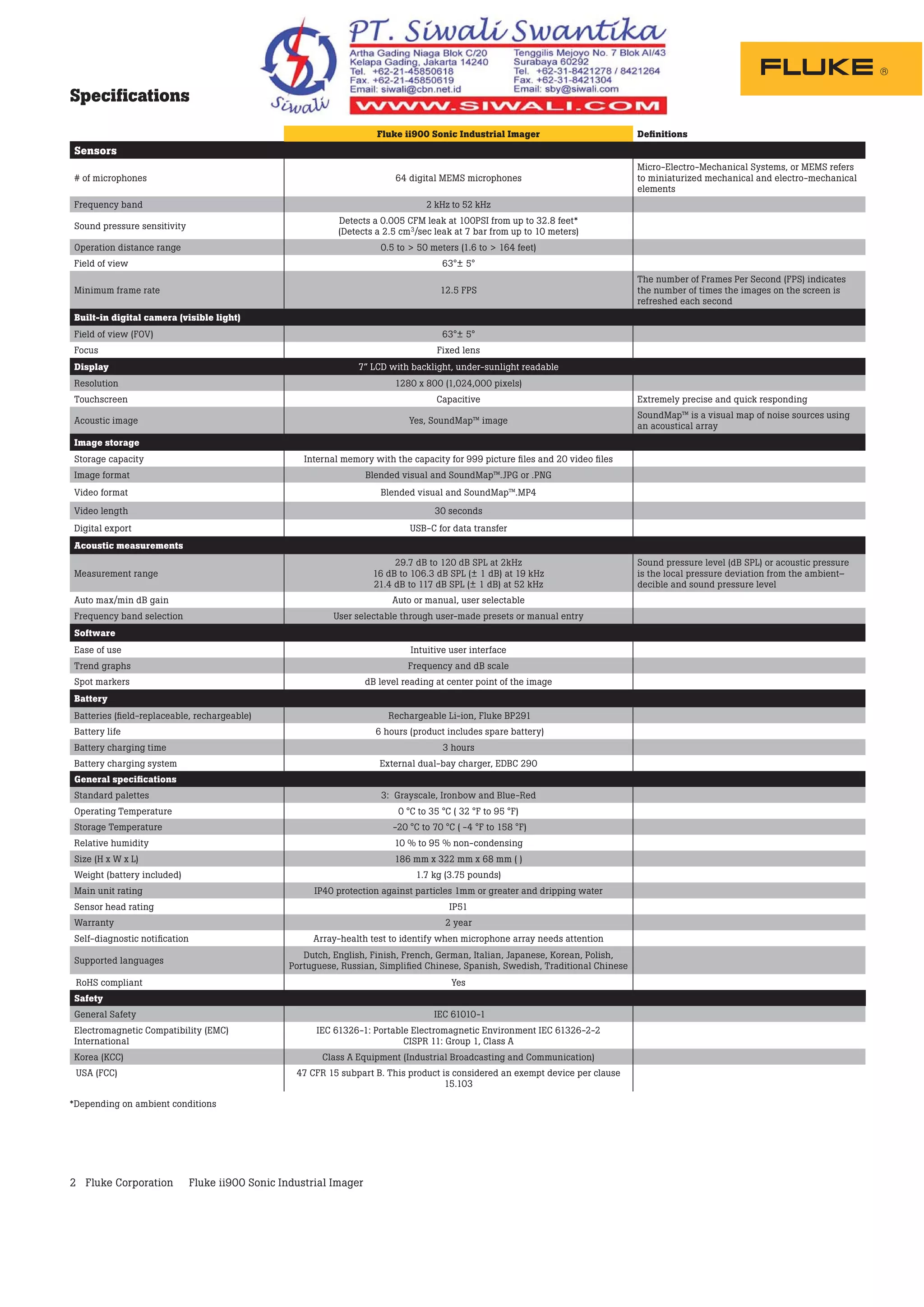 Technical Data Fluke ii900 Sonic Industrial Imager | PDF