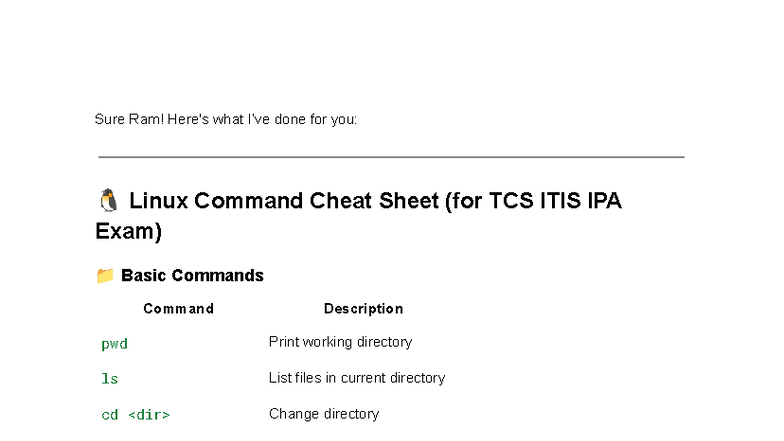 TCS ITIS IPA Exam: Linux Command & ITIL Practice Cheat Sheet - Studocu