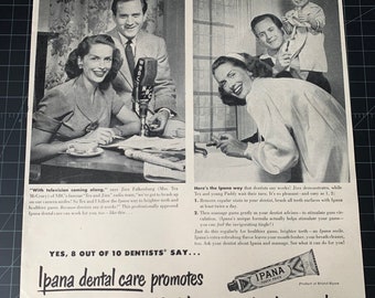 1950 IPANA Toothpaste Teeth Dental Health Vintage Print Ad - Etsy