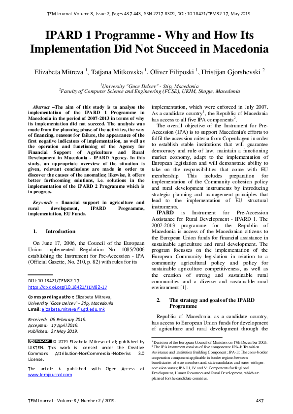 (PDF) IPARD 1 Programme - Why and How Its Implementation Did Not ...
