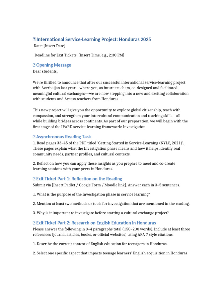Async IPARD Investigation and Honduras Exit Ticket | PDF | Learning ...