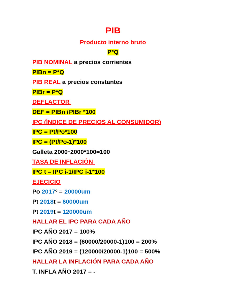 Cálculo de PIB e IPC: Ejercicios y Fórmulas | PDF