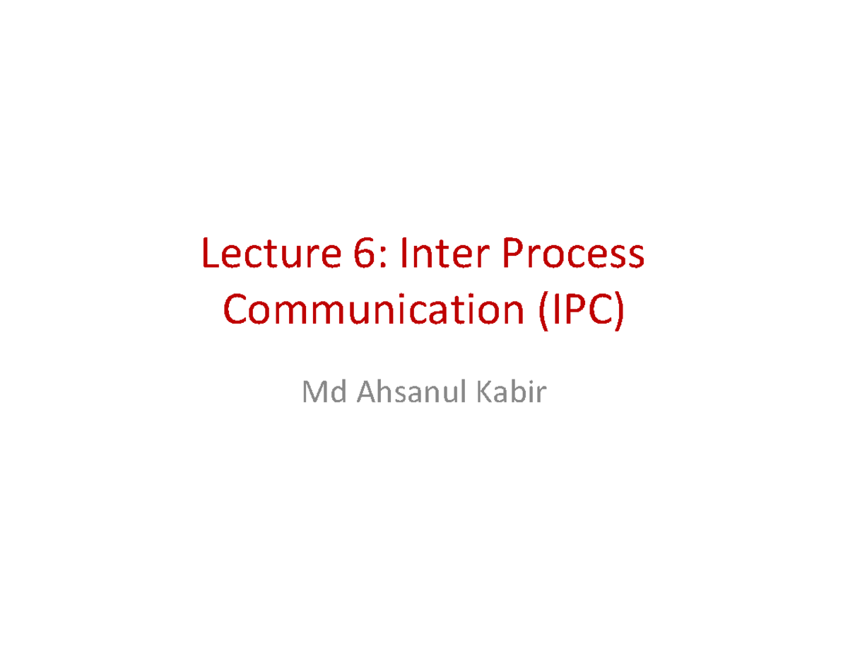 Lecture 6: IPC Mechanisms and Communication Techniques - Studocu