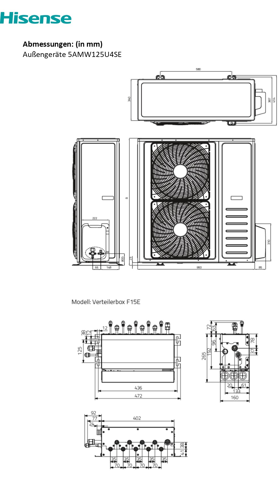 Maßzeichnung Hisense Multi Split Außengerät AMW125U4SE inkl. Box | IPK ...