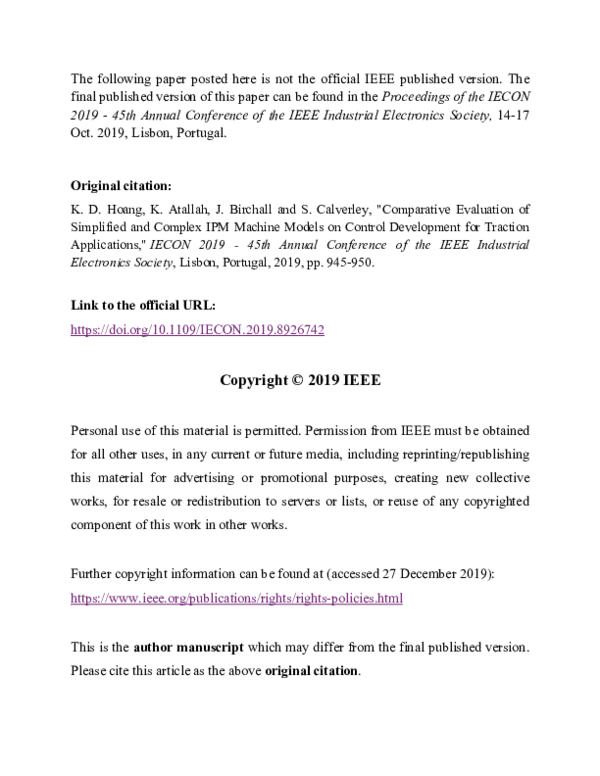 (PDF) Comparative Evaluation of Simplified and Complex IPM Machine ...