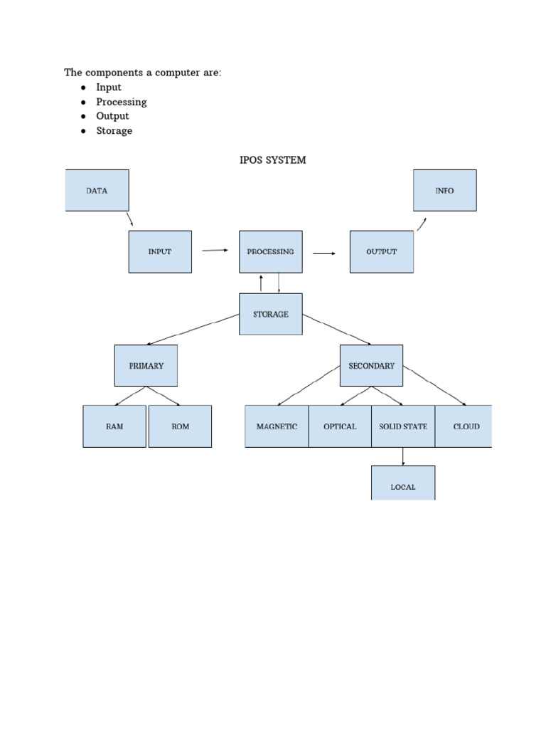 1. The letters IPOS stand for Input, Process, Output and Storage. Input ...