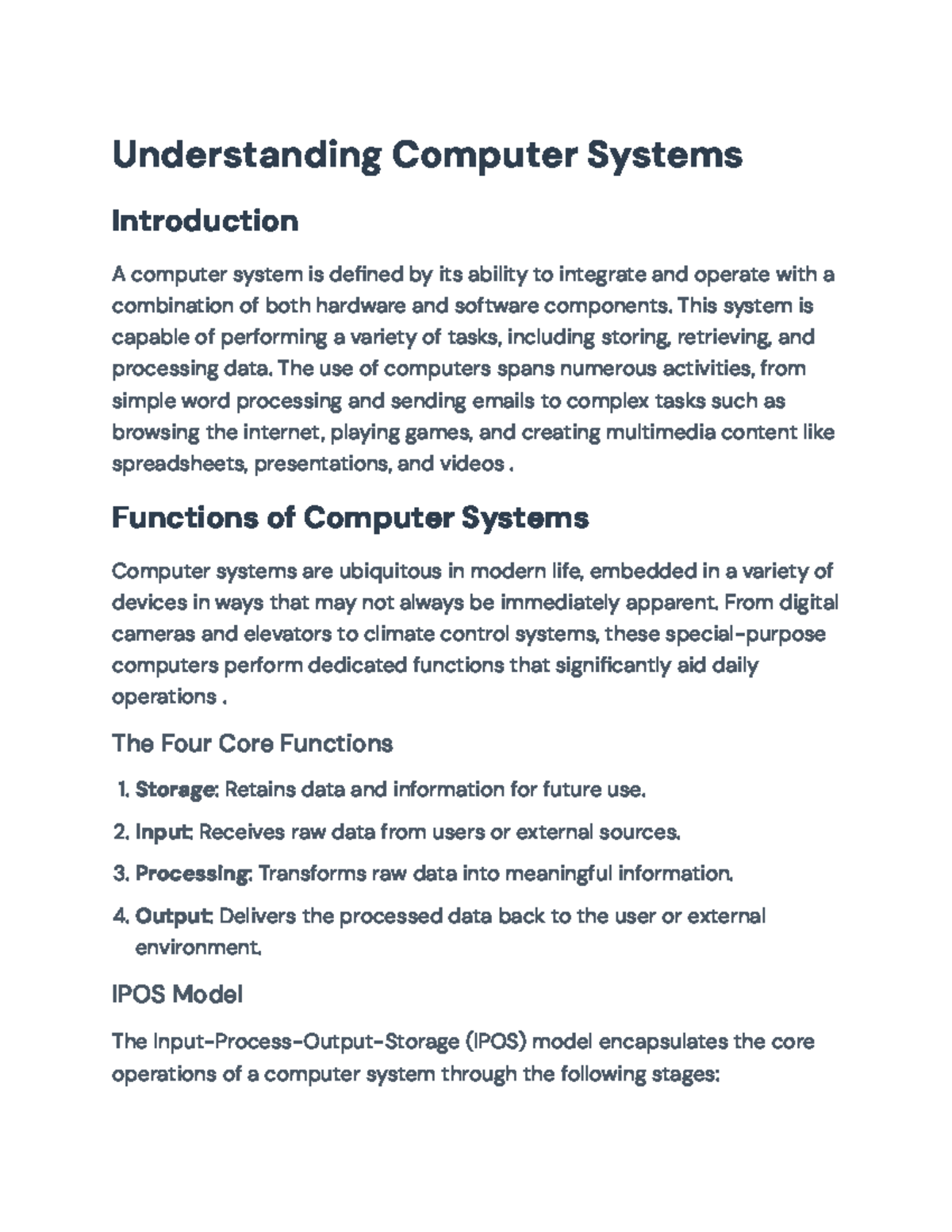 Understanding Computer Systems: Functions, Roles, and IPOS Model ...