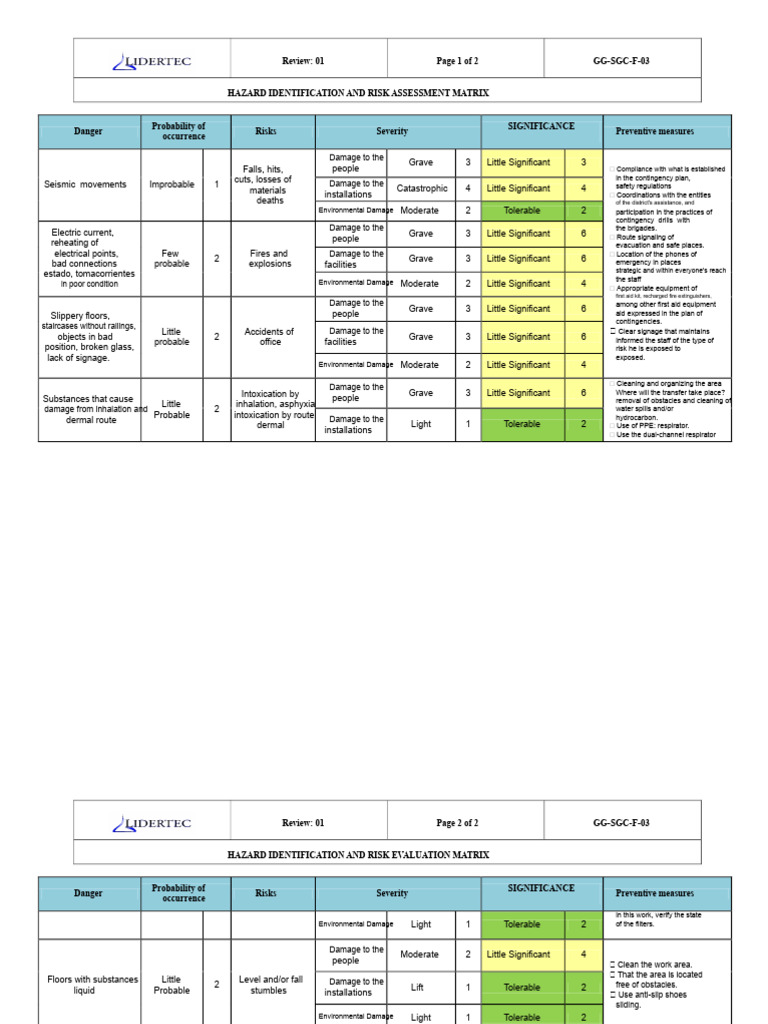 IPER Matrix | PDF | Risk | Hazards