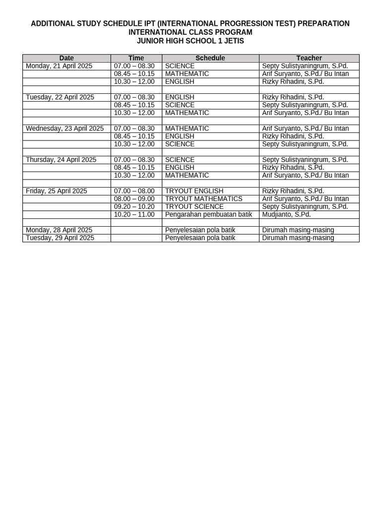 Additional Study Schedule Ipt | PDF