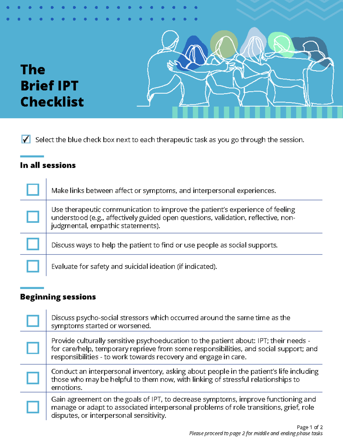 The Brief IPT Checklist: Therapeutic Tasks & Guidelines - Studocu