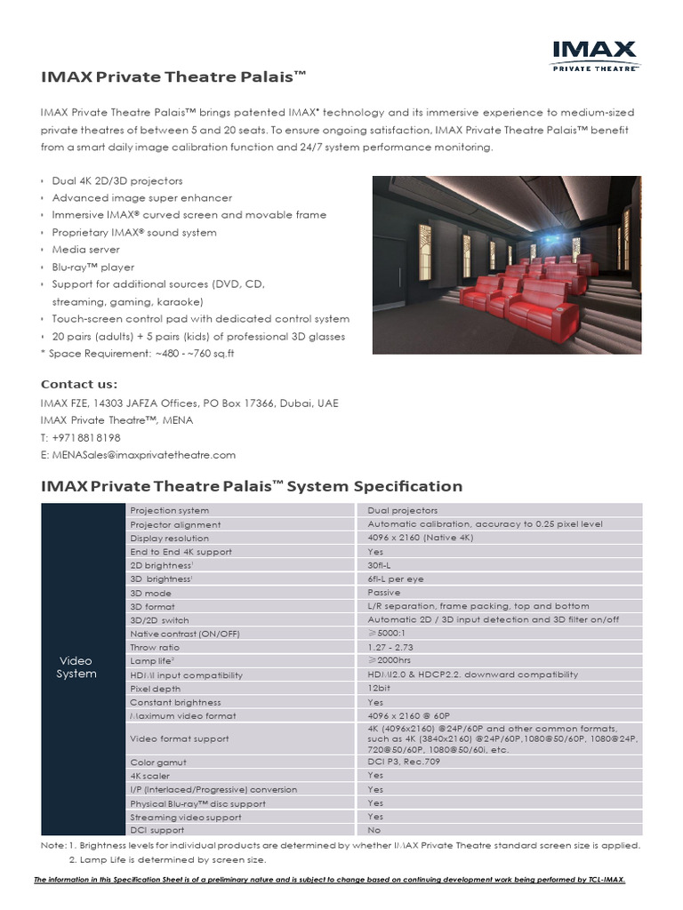 IPT Palais Tech-Sheet ENG MENA | PDF | 3 D Film | Video