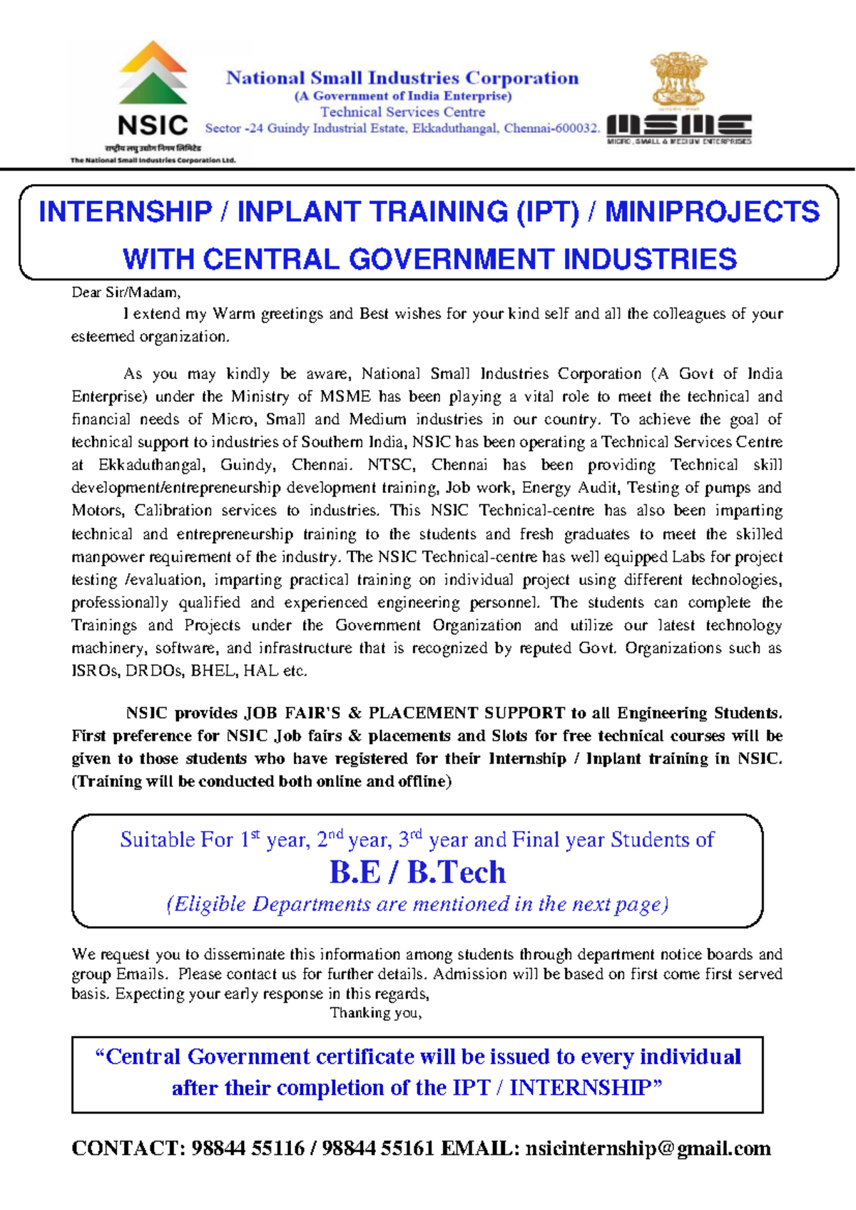 NSIC-IPT 2022-2023: Internship Opportunities at Central Govt. Tech ...