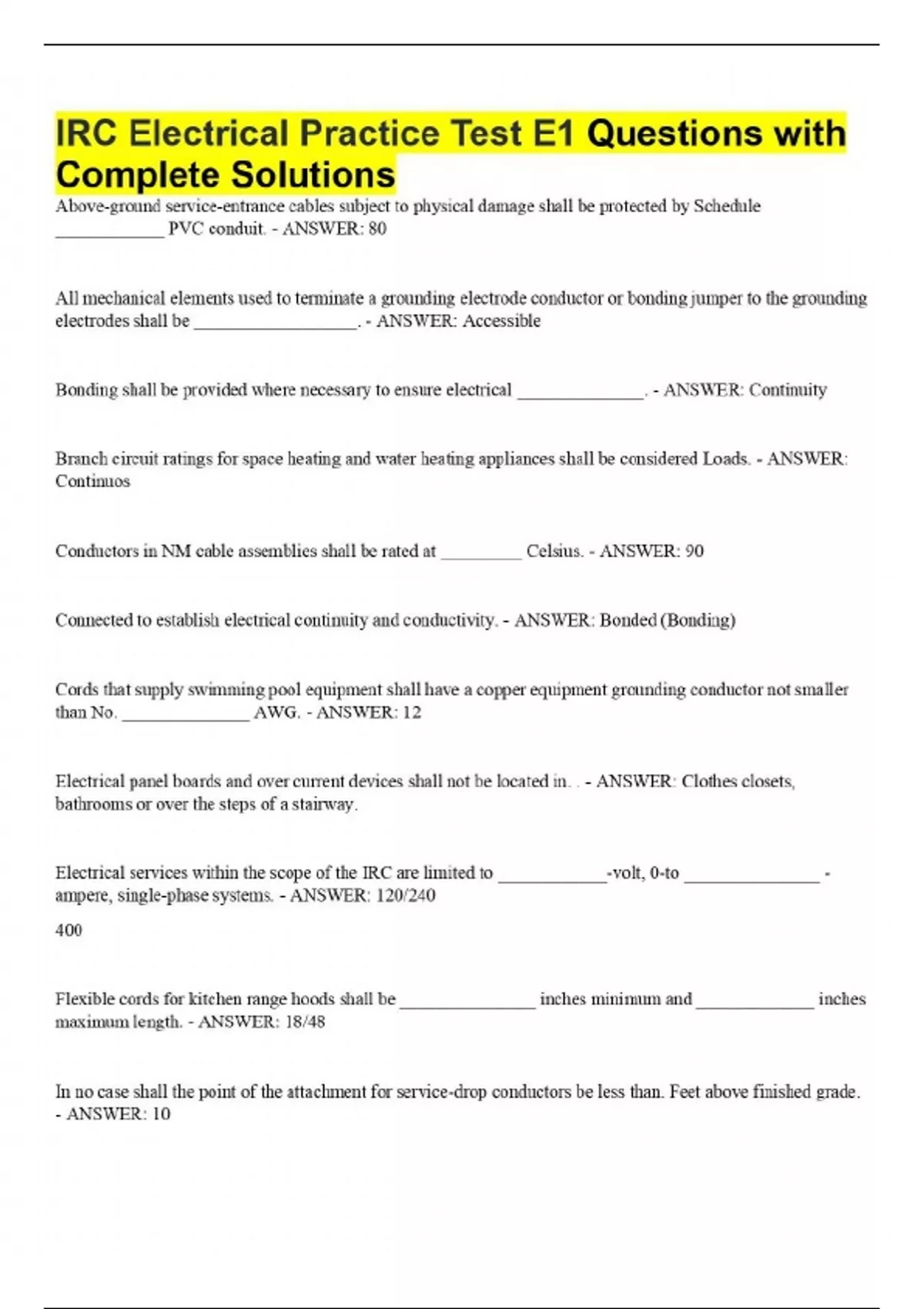IRC Electrical Practice Test E1 Questions with Complete Solutions - IRC ...