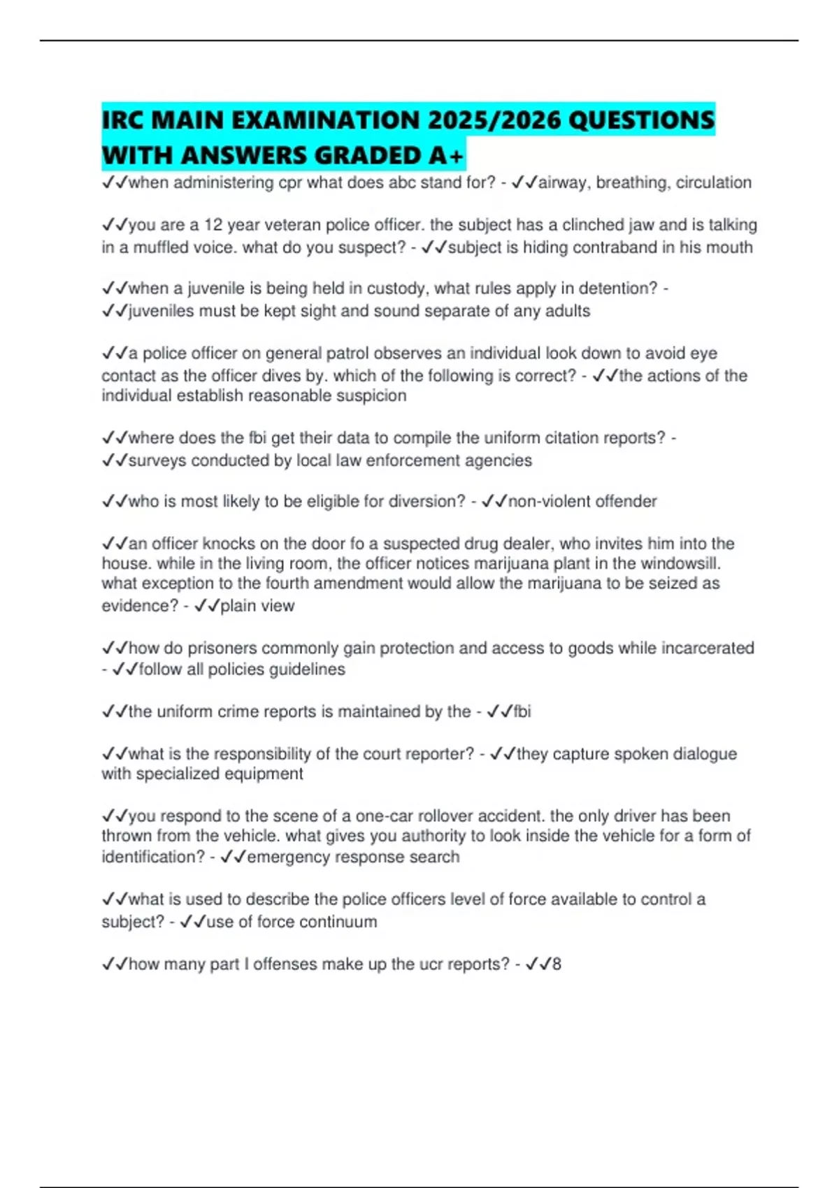 2025 IRC EXAM PART 2 QUESTIONS WITH CORRECT ANSWERS - IRC - Stuvia US