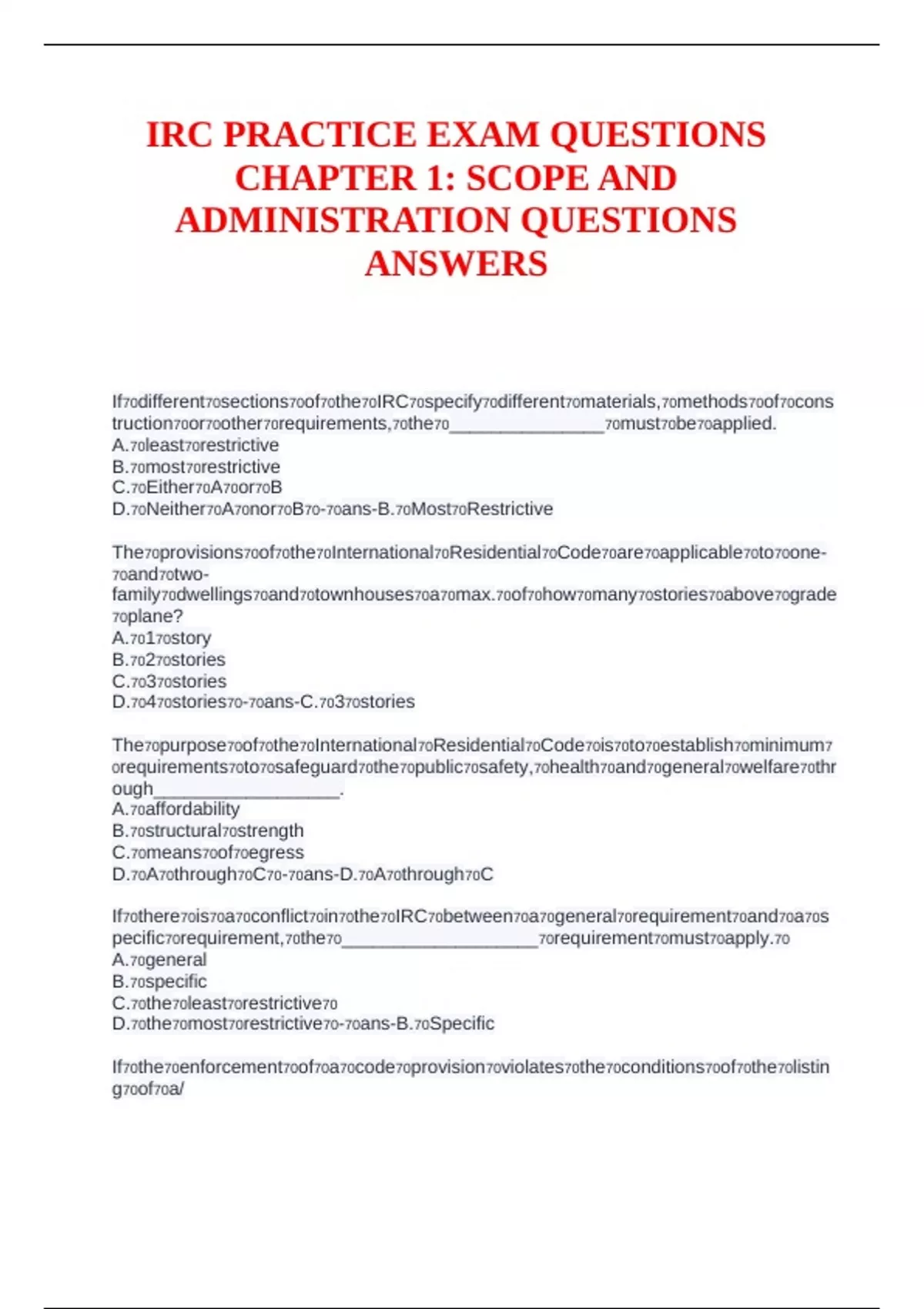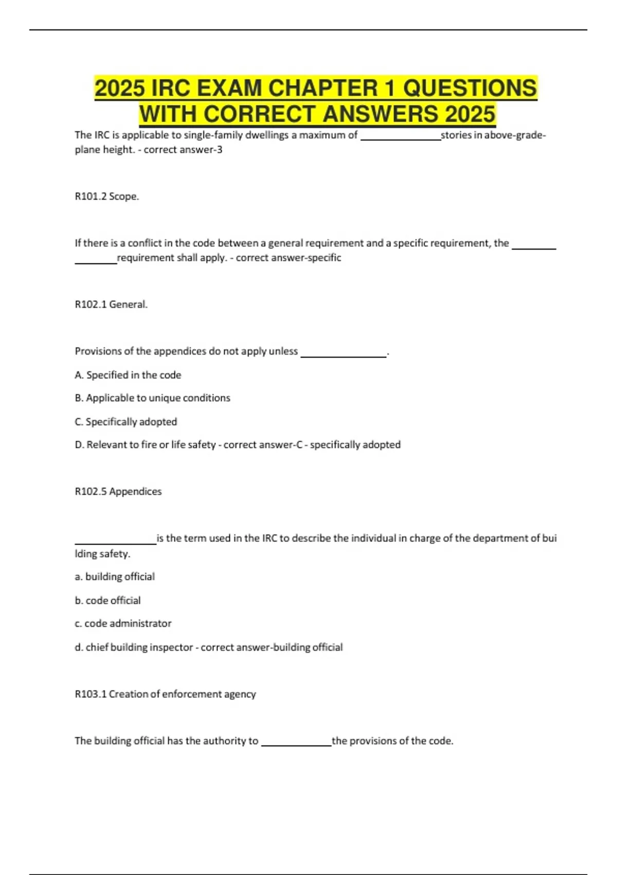IRC Practice Exam Questions with Correct Answers Chapter 1: Scope and ...