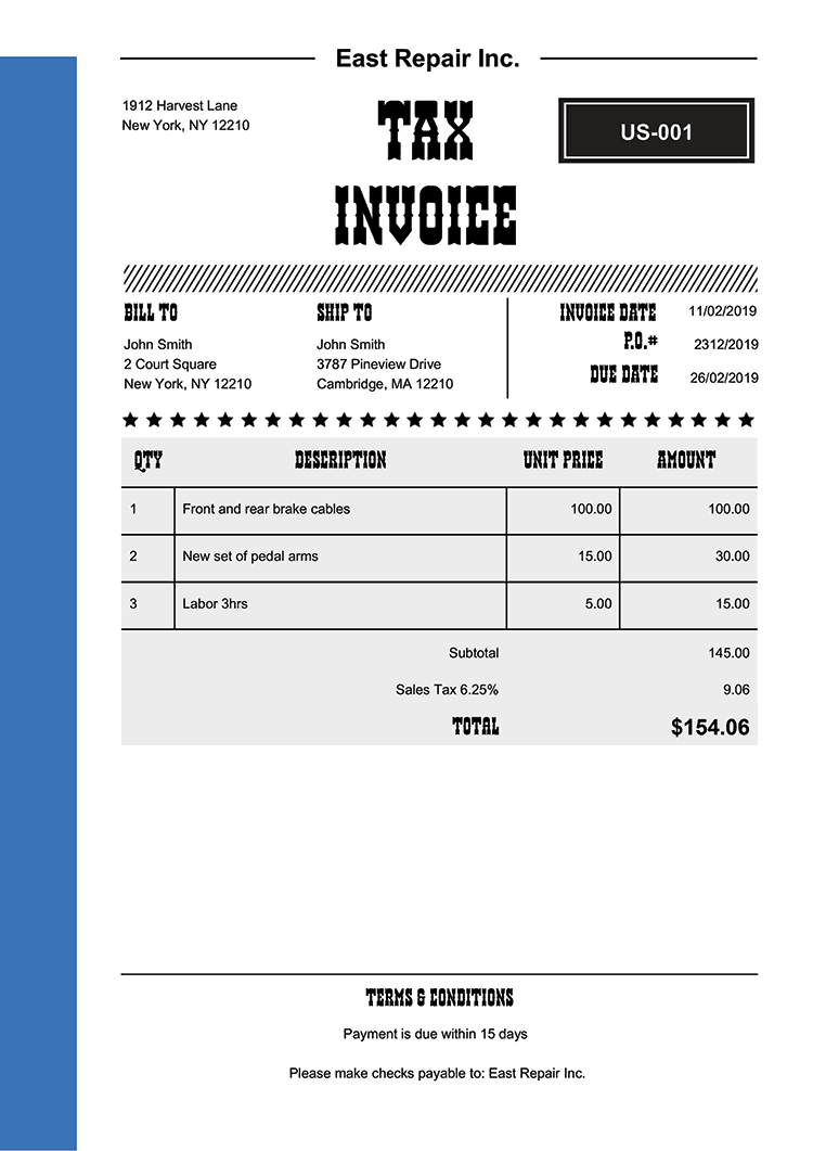 Us Invoice Template Templates