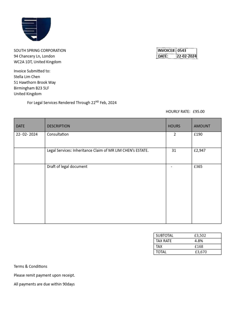South Spring Corporation Invoice | PDF