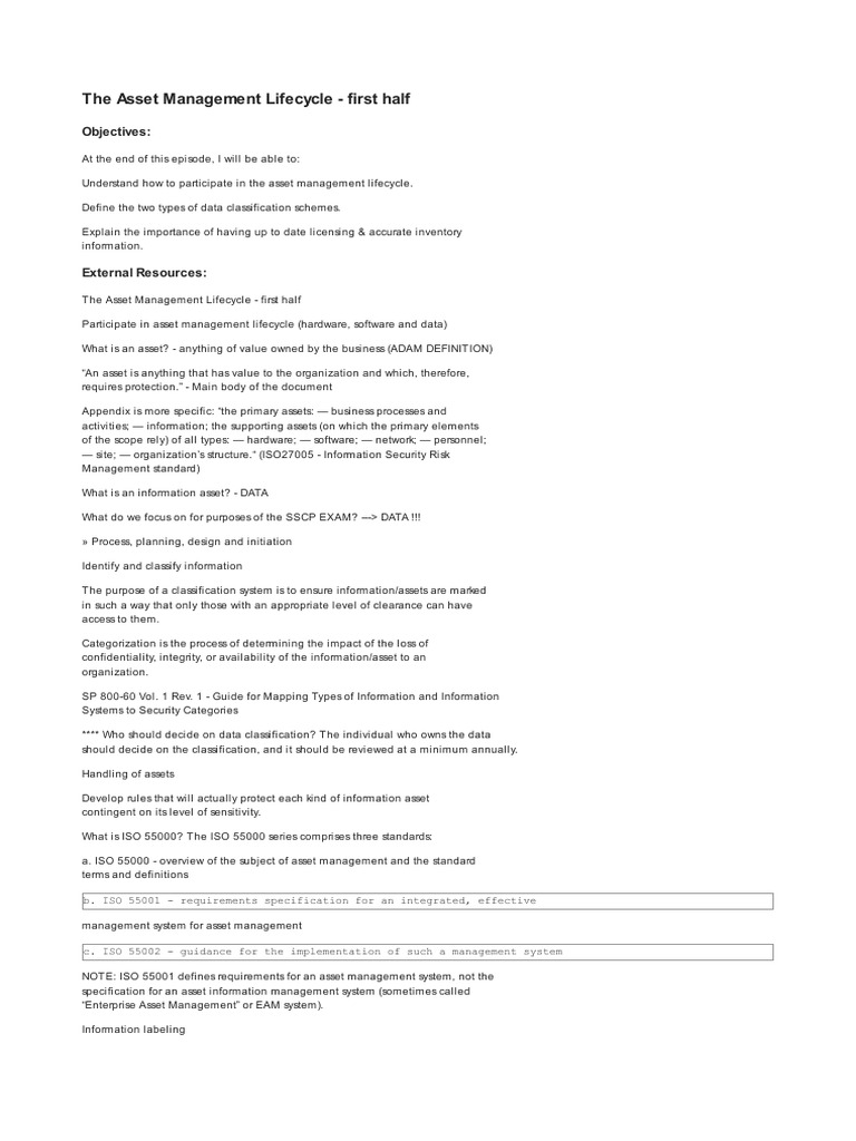 Isc2 SSCP 1 5 1 The Asset Management Lifecycle First Half 031422 | PDF ...
