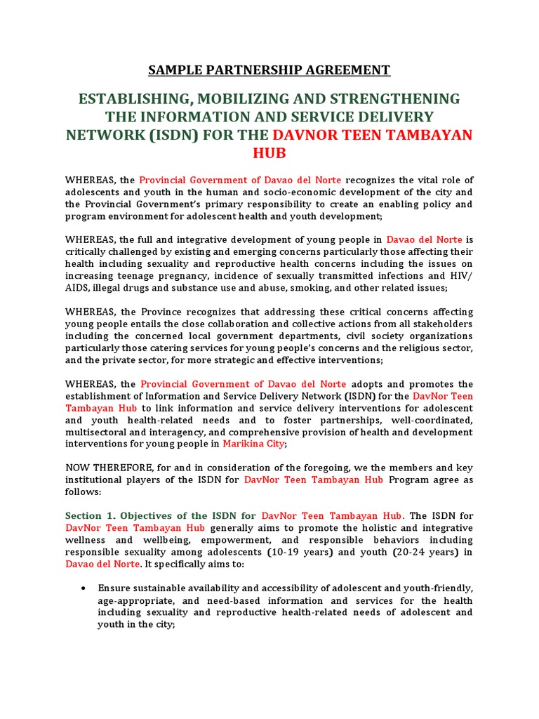 ISDN - Partnership Agreement Sample | PDF | Adolescence | Health Care