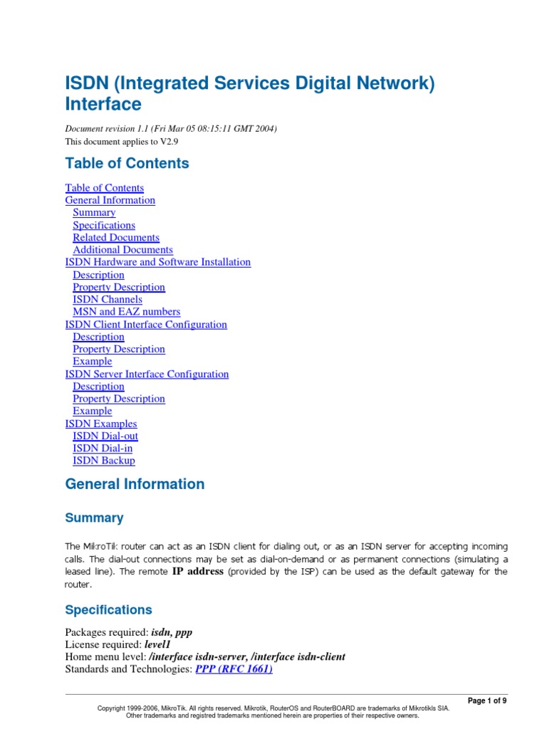 ISDN (Integrated Services Digital Network) Interface: Document Revision ...