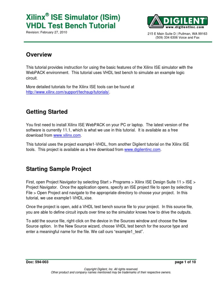 Xilinx ISE Simulator (ISim) VHDL Test Bench Tutorial | PDF | Vhdl ...