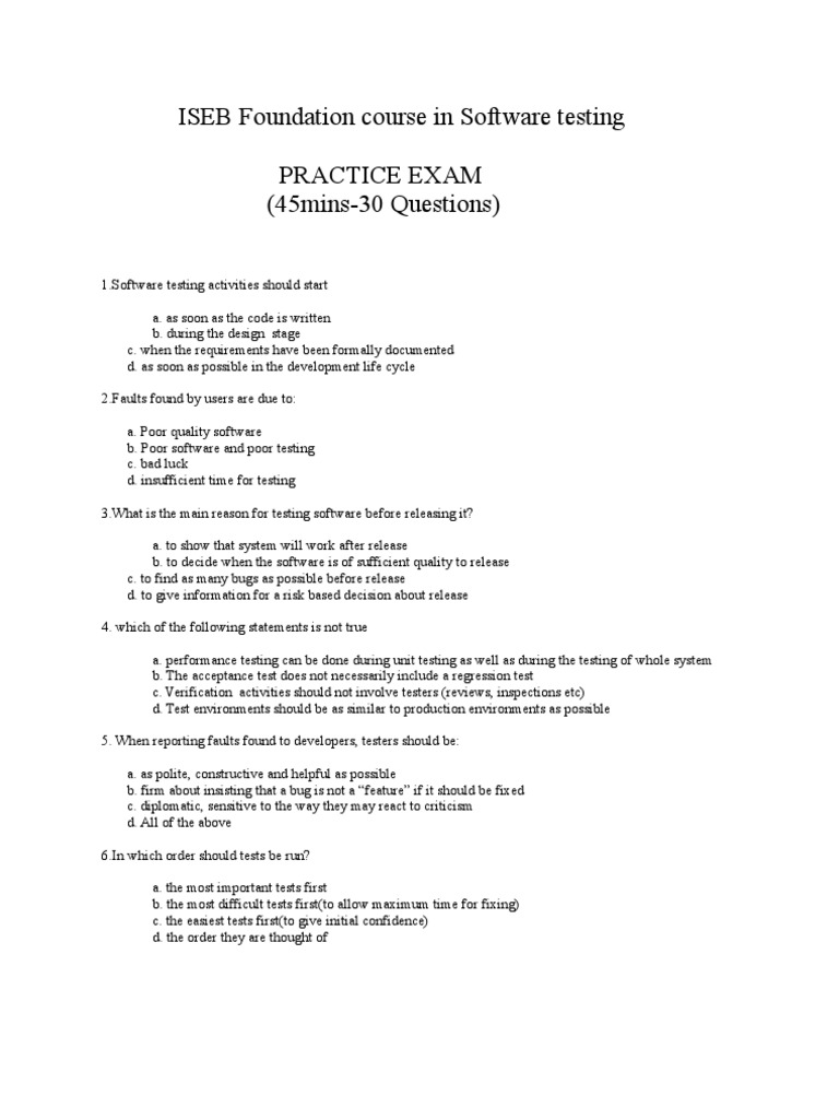 ISEB Foundation Course in Software Testing PRACTICE EXAM (45mins-30 ...