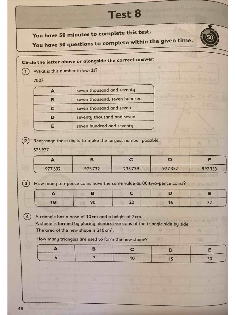 ISEB Common Pre-Test Mathematics Paper 4 | PDF