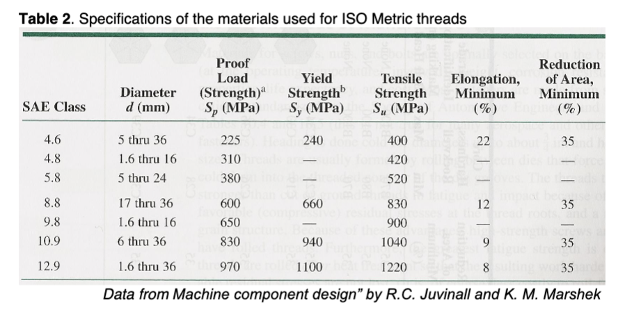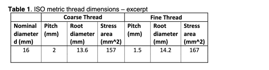 Solved Table 1. ISO metric thread dimensions - excerntTable | Chegg.com