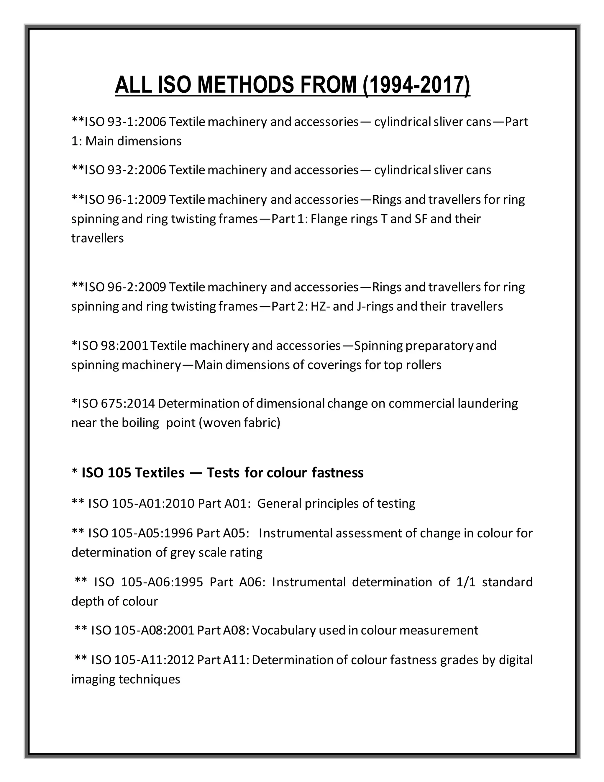 ISO methods From (1994-2017) | DOCX