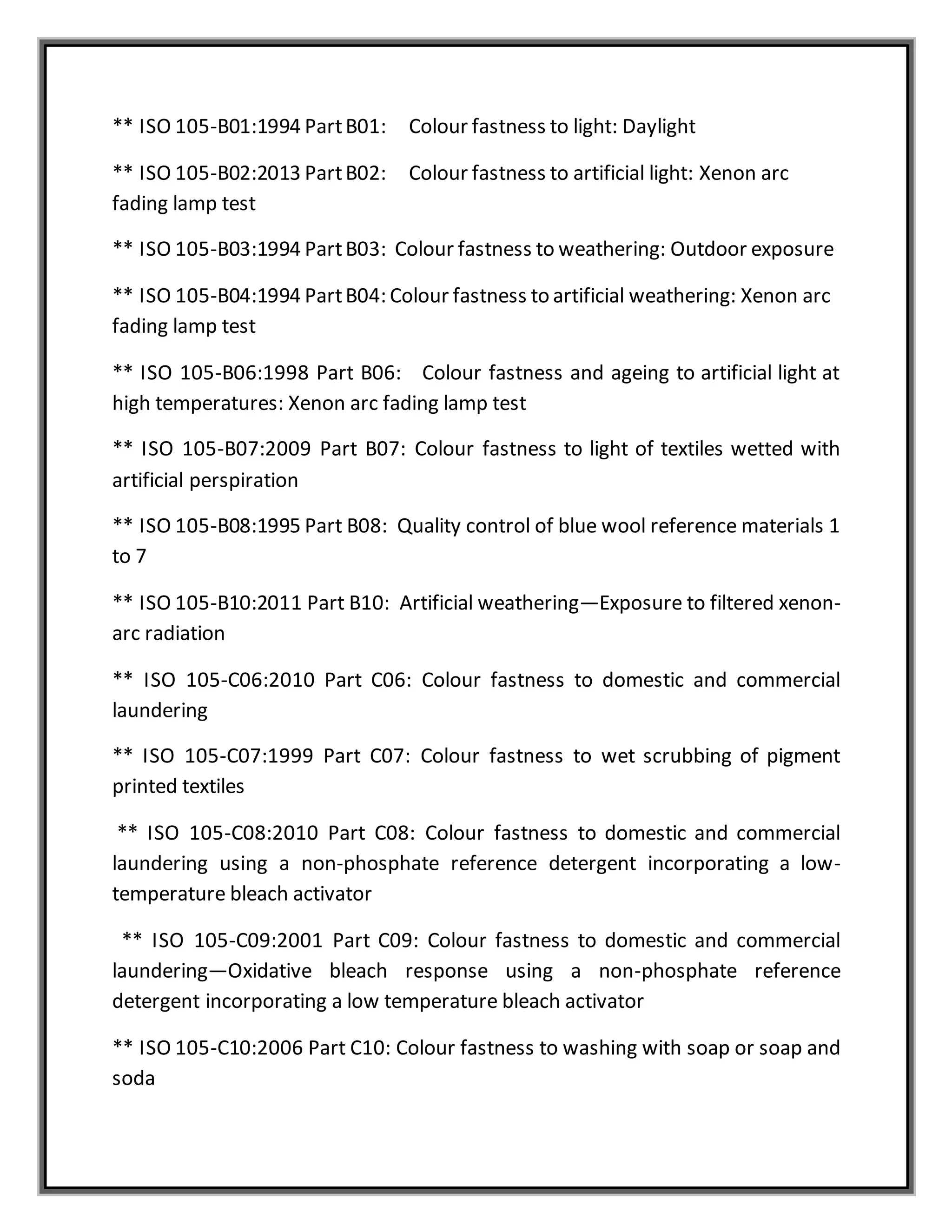 List of all Colorfastness Test in ISO Method
