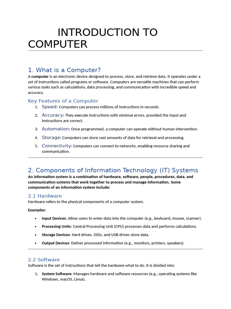 ITB notes SEC C - 14.08 what is computer ? what are the basic ...
