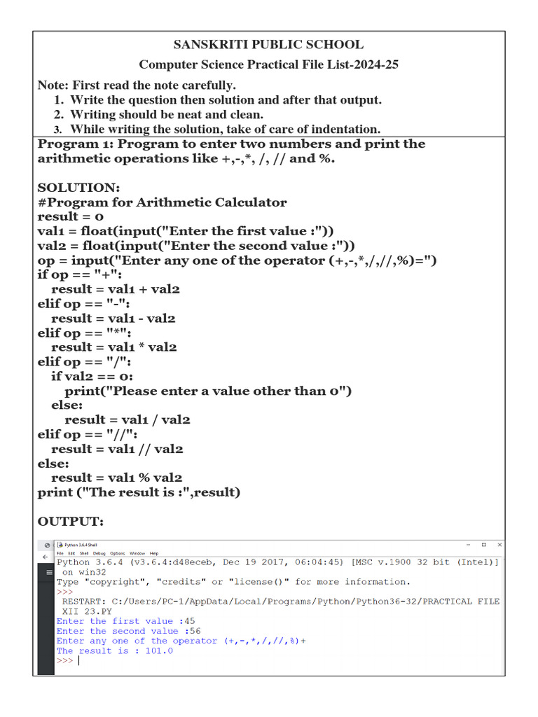 Computer Science Practical File | PDF | Computers | Teaching Methods ...