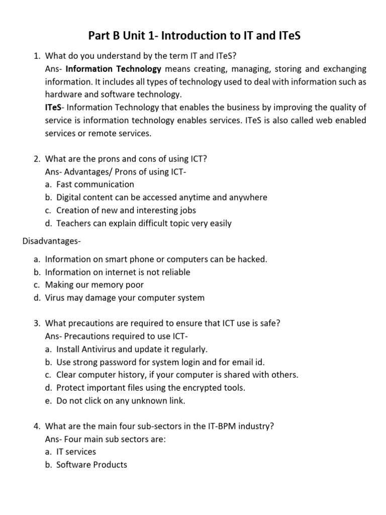 Unit-1 | Introduction to IT- ITeS industry | Information Technology ...