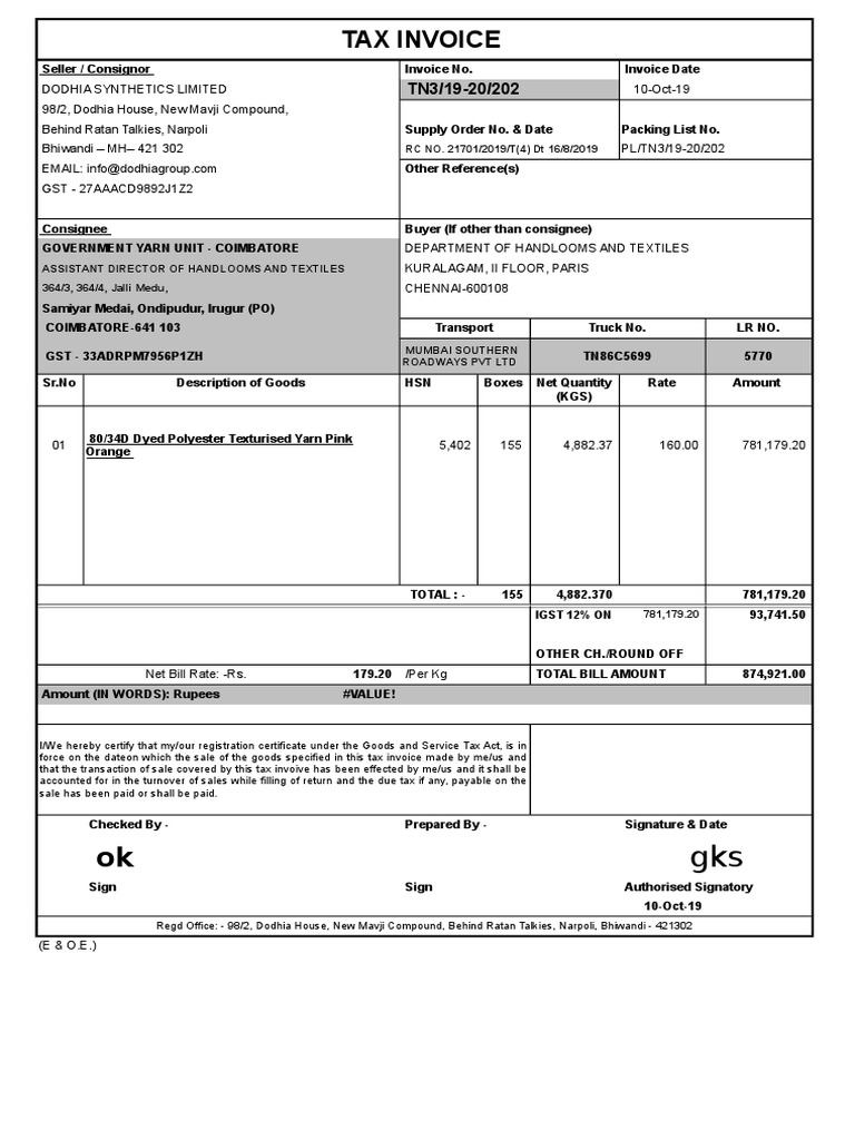 Invoice NO - TN3-202-19-20 - Coimbtore-Revised PDF | PDF | Invoice ...