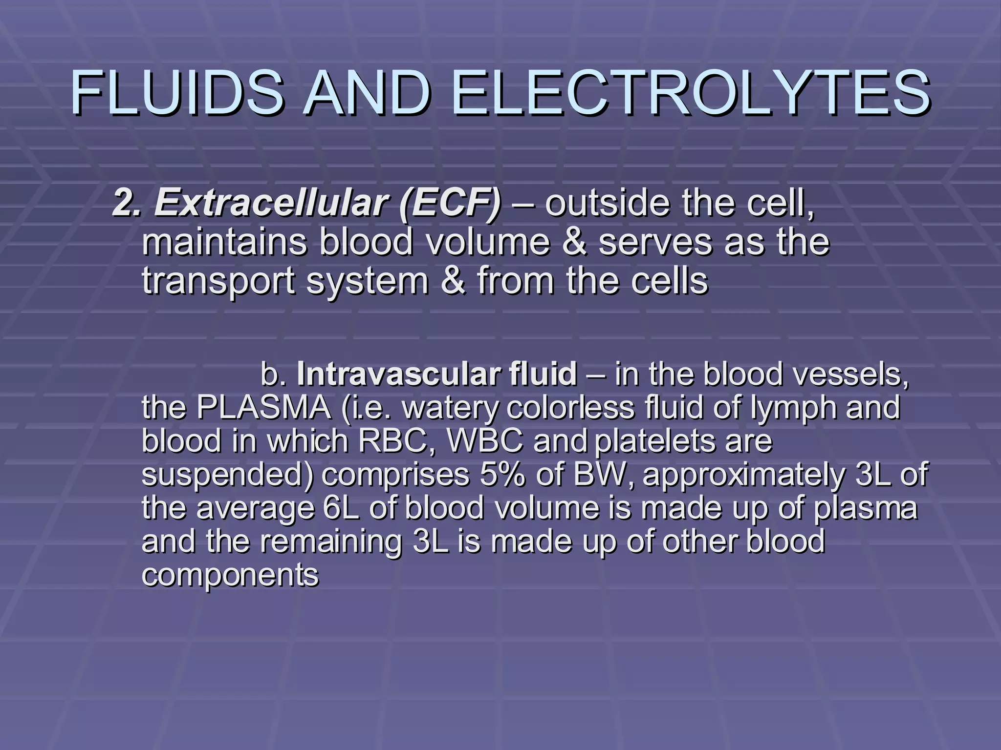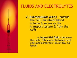 BODY FLUID COMPARTMENTS, INTRACELLULAR FLUID (ICF), EXTRA CELLULAR ...