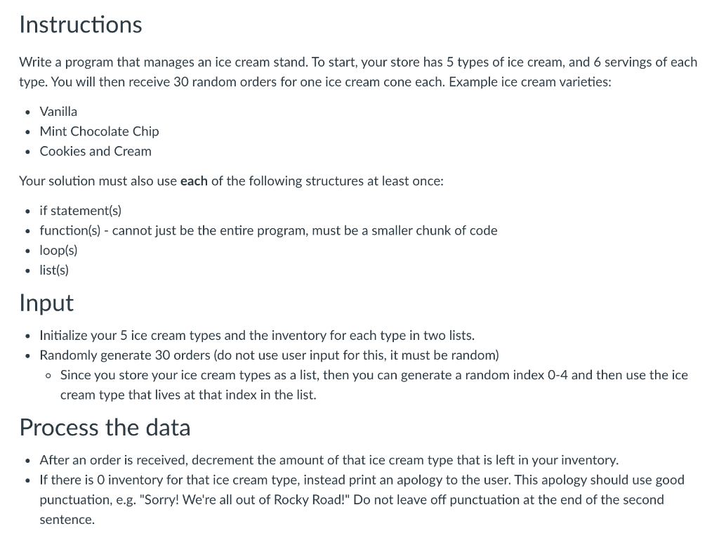 Solved Write a program to take ice cream orders for the Quad | Chegg.com