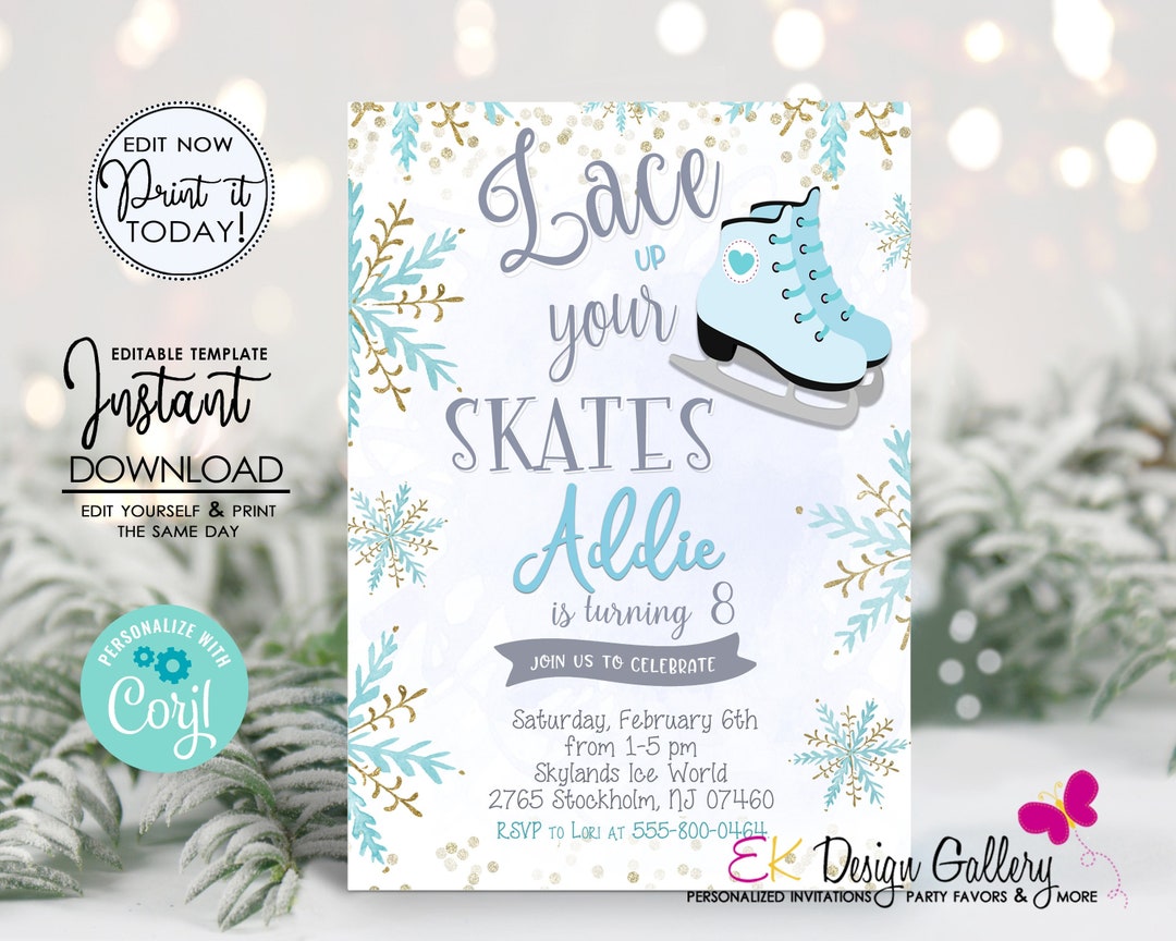 Ice Skating Birthday Invitation EDITABLE Winter Skate Party - Etsy