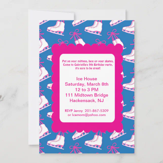 Ice Skating Birthday Invitation, Pink Skates, Winter Wonderland ...