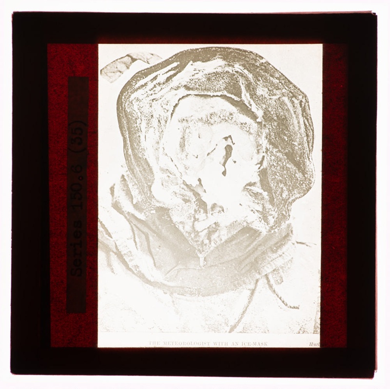 Ice mask. Caption at bottom of image reads: "THE METEOROLOGIST WITH AN ...