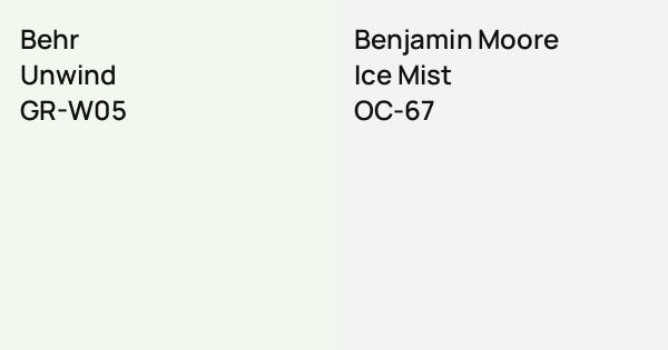 Behr Unwind vs. Benjamin Moore Ice Mist comparison