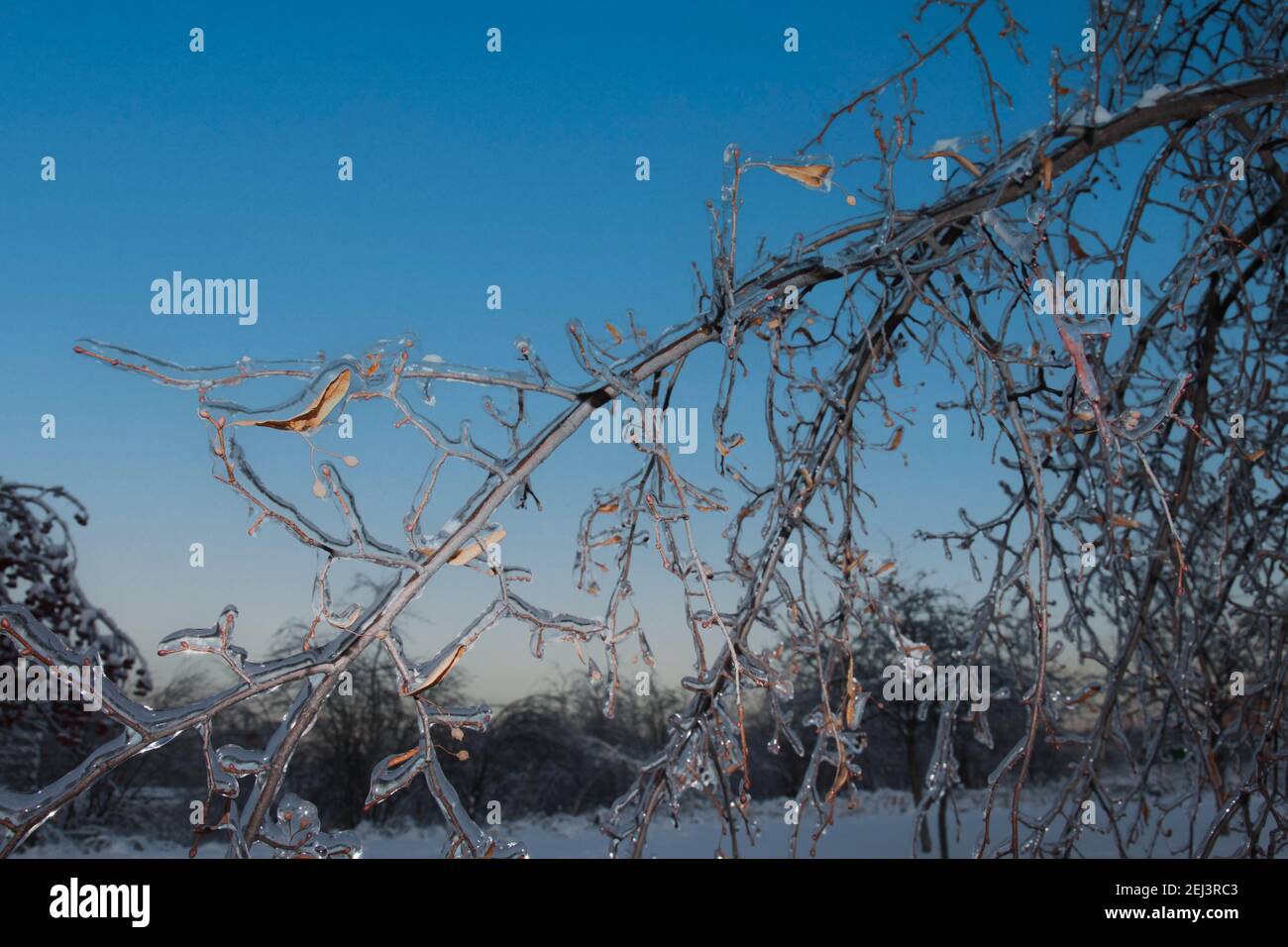 ice shell on tree branches after icy rain Stock Photo - Alamy